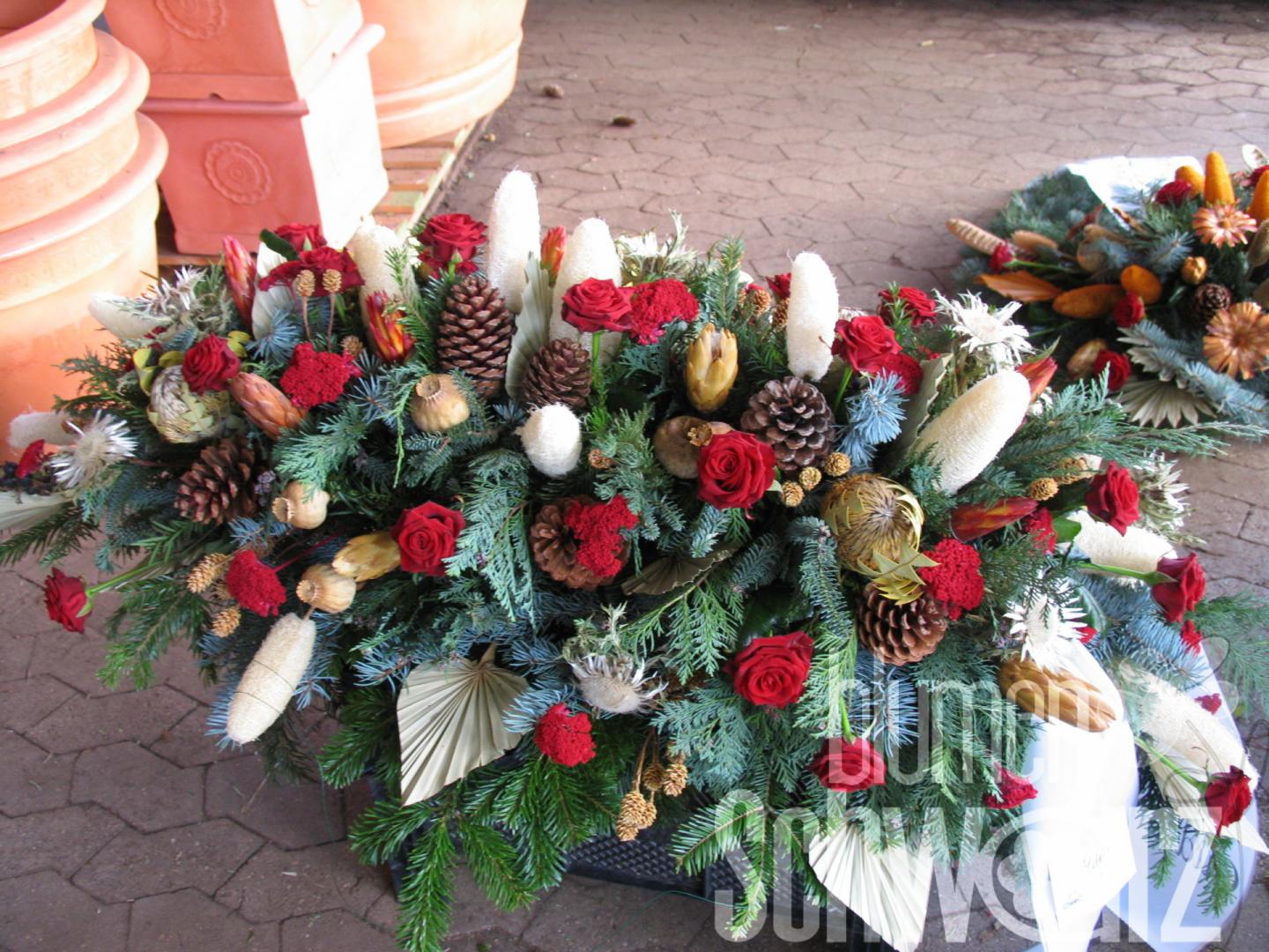 Startseite Blumengaben rundgesteckte Kränze gepflanzte Kränze klassische Kränze Kreuze, Herzen Blumenbuketts im Winter Sargschmuck außergewöhnlich klassisch Urnenschmuck Dekoration Kapellendekoration Grabdekoration ausgefallene Trauerbinderei weitere Informationen Service Trauerschleifen Trauerbräuche Friedhofskapellen und Plan