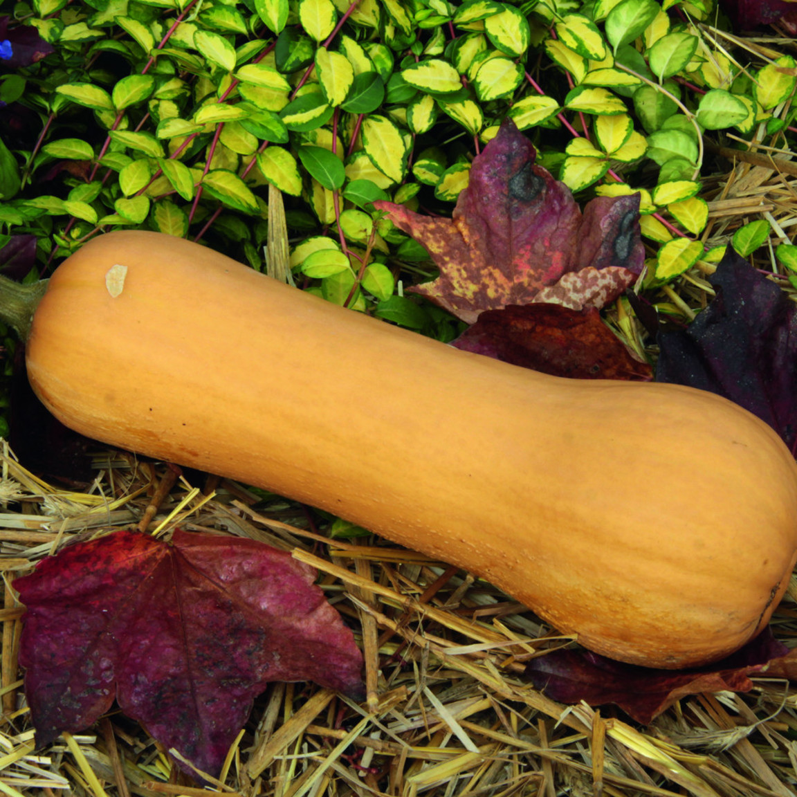 Großfrüchtiger Butternut mit länglichen, leicht gebogenen Früchten