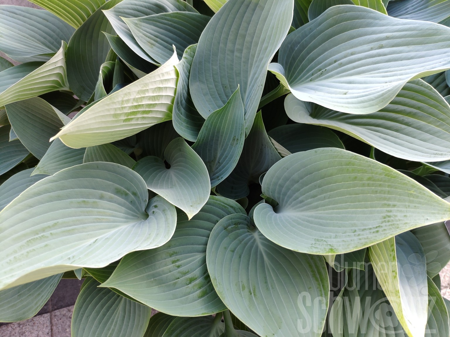 violett, VI-VIII, Blatt stahlblau, sehr groß, leicht gewellt, 60-70/120-150cm, aufrecht, große Blatthorste bildend, Solitär