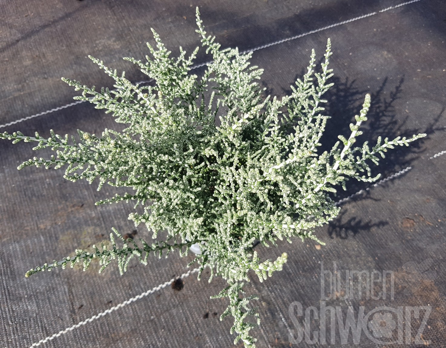 Blatt: silbrige Ästchen, immergrün
